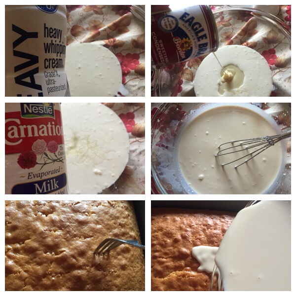 Now,pour the mixture all over the cake and let it rest for 30 minutes or until cake completely absorbs milk mixture.