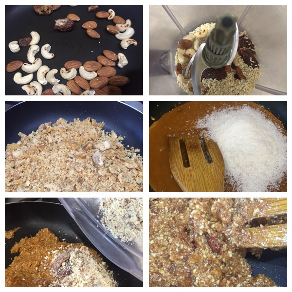 Slightly dry roast the sesame seeds and dry fruits except raisins. Grind it dry to a smooth powder(little coarse is also fine). Now add raisins to the dry fruits mixture.