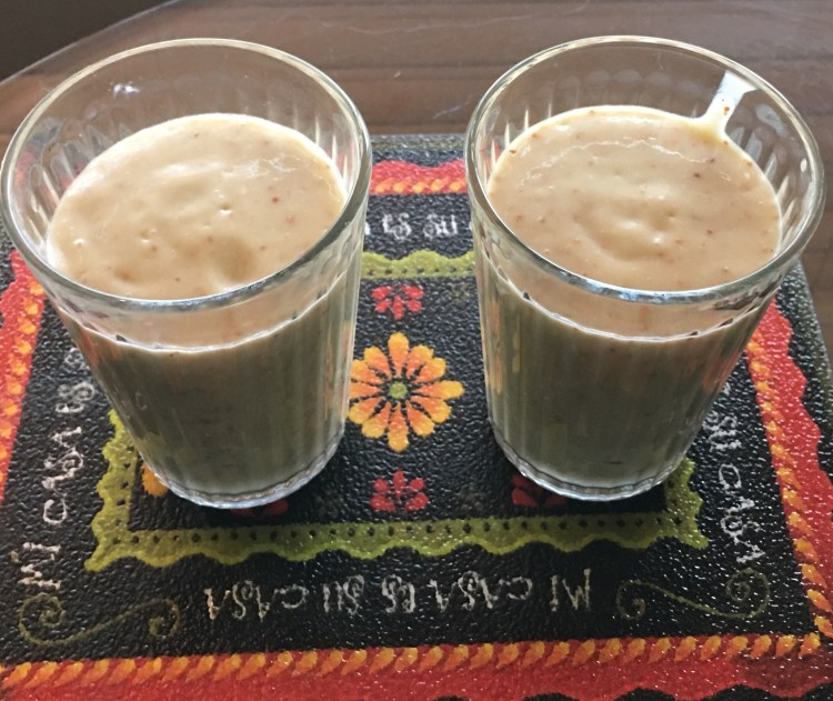 Fig milkshake with almonds ,honey ,milk and avocado is a delicious drink.