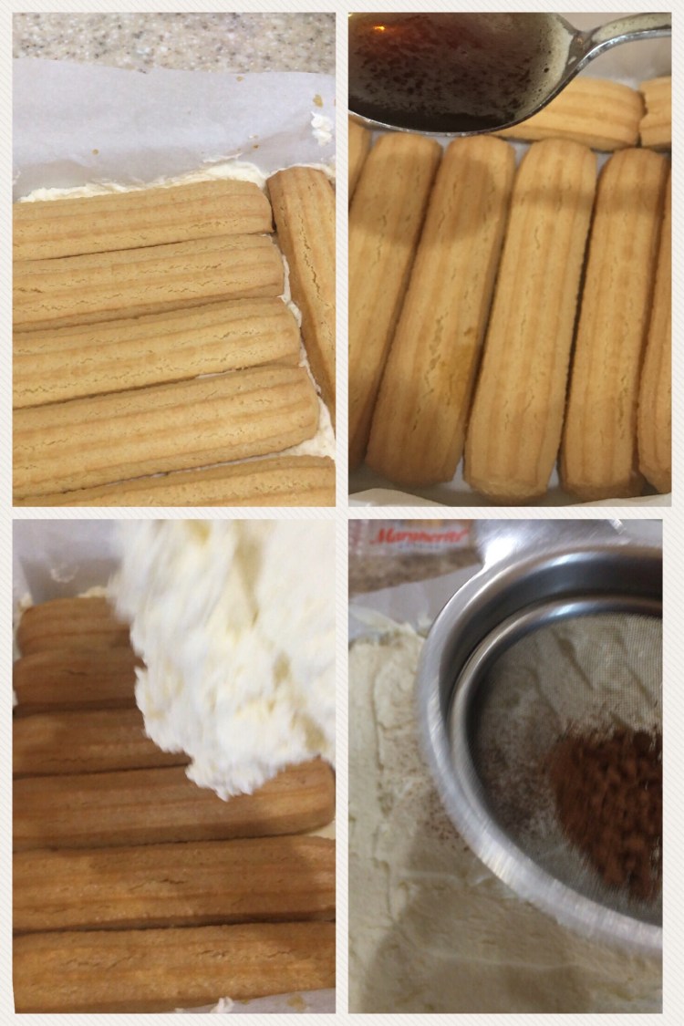 Step 4 – arrange another layer of cookies ,soak with coffee ,spread remaining cream mixture over the cookies.